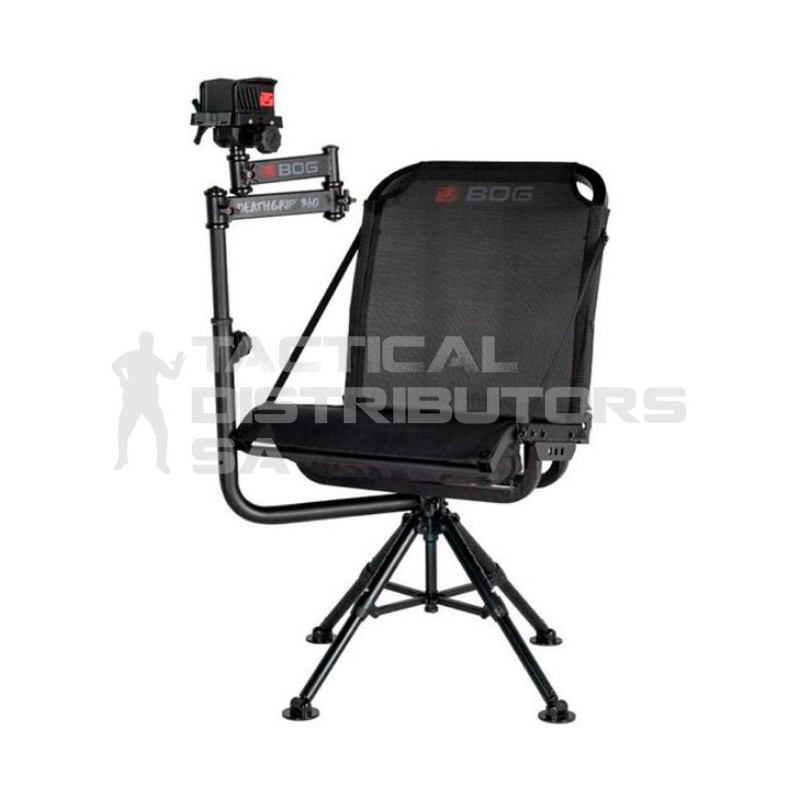- The BOG DeathGrip 360 was designed to overcome the battle that all hunters fight with comfort and noise while giving you a rock-solid rest, making for a lethal combination. Constructed of ultra-comfortable textilene fabric and adjustable-height legs.