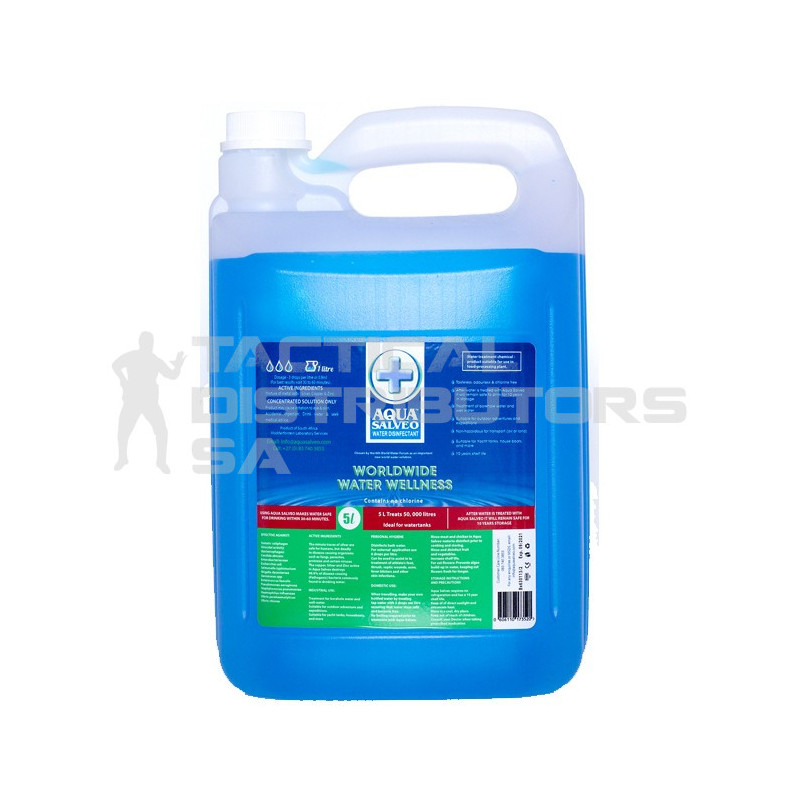 - Aqua Salveo water disinfectant is a metal salts solution that disinfects water within 30 - 60 minutes and remains disinfected for extended periods. Great for emergency relief, camping/outdoors, survival and everyday use. (Water tanks etc.)