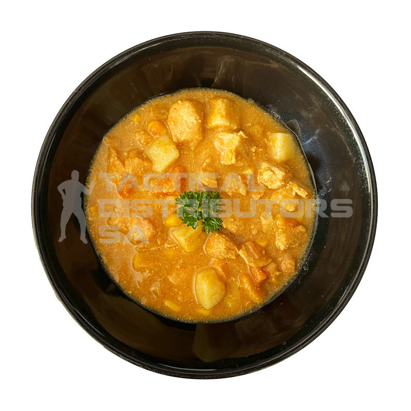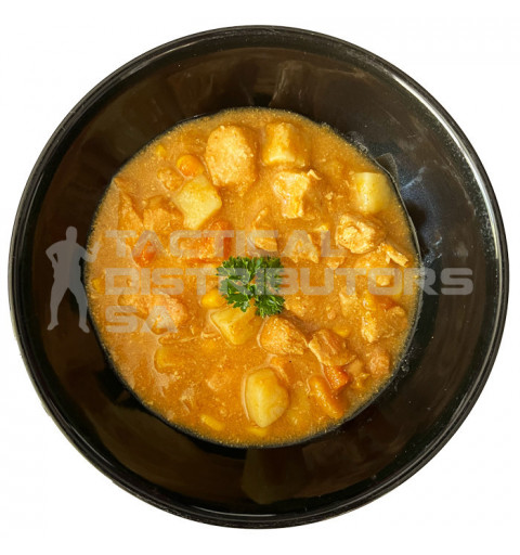 - Cubed Chicken in a Mild Fragrant Curry Sauce with Potatoes, Pumpkin, Carrots, Sweet Corn Green Pepper