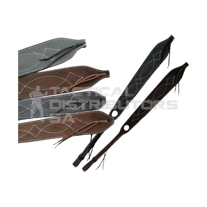 - Soft suede rifle sling with thumbhole. Adjustable length.