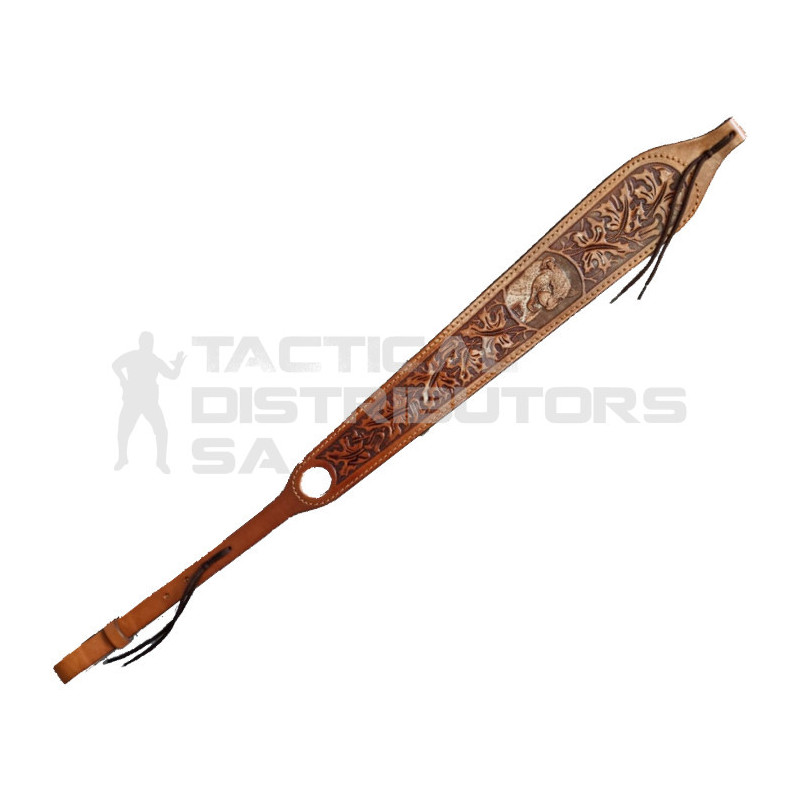 - Full 3? wide at the shoulder it tapers to fit 1? swivels, featuring a thumb hole. This sling is available with the different big five animal head disks or the big five family leather disks. Swivels sold separately.